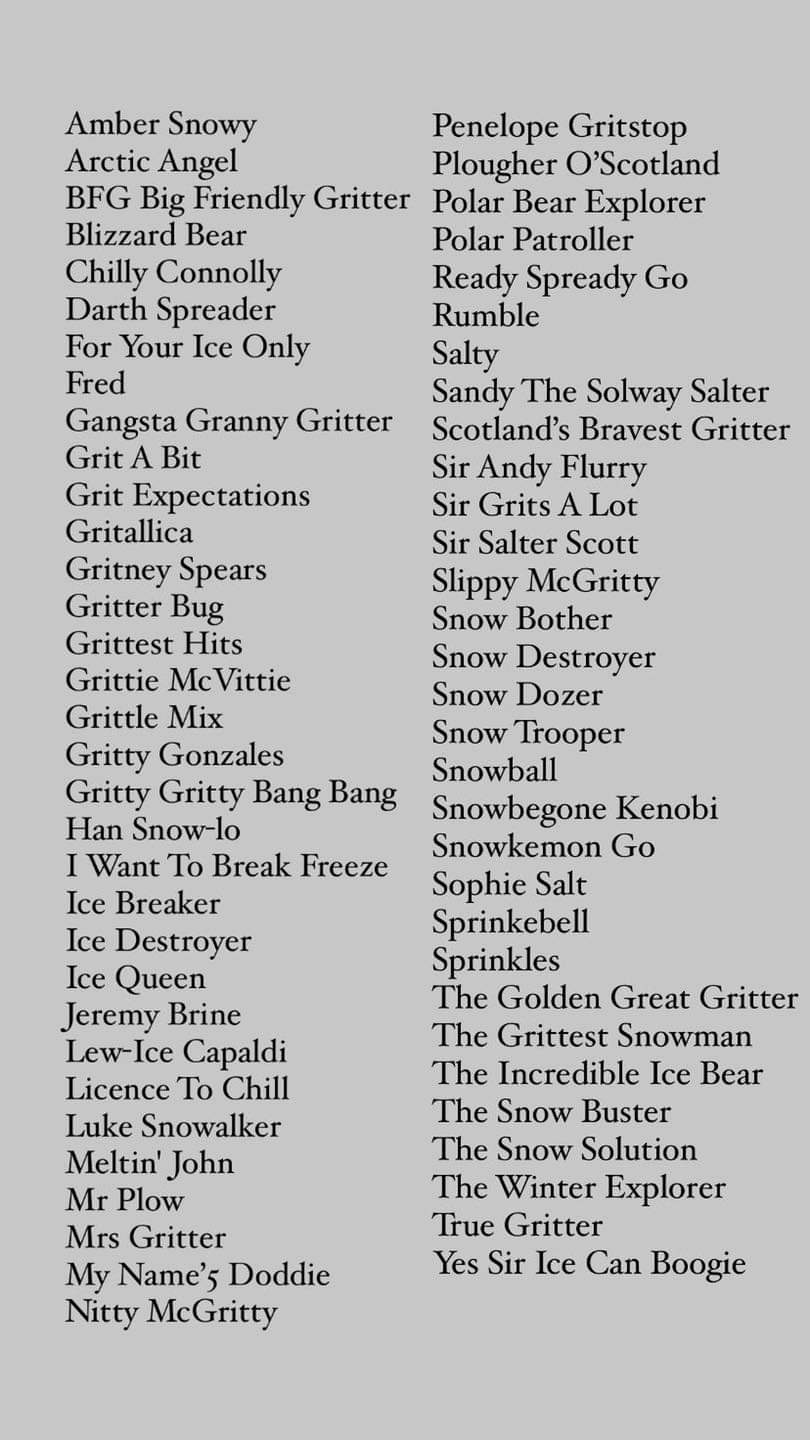 Mat Osman On Twitter Oh Wow Every Scottish Snowplough Has An Official Name And They Are All Fantastic I Can T Decide Whether I Want To Break Freeze Or Plougher O Scotland Is