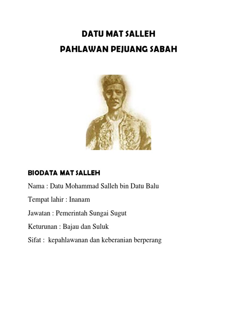 Sejarah Paduka Mat Salleh Pahlawan Sabah Suara Anak Sabah Facebook
