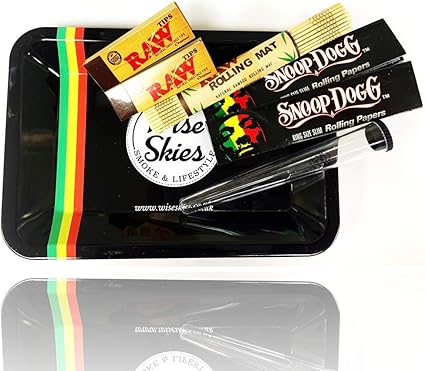 Wise Skies Mini Smoking Rolling Tray Set Snoop Dogg Papers Raw Tips Roll Mat Amazon Co Uk Kitchen Home