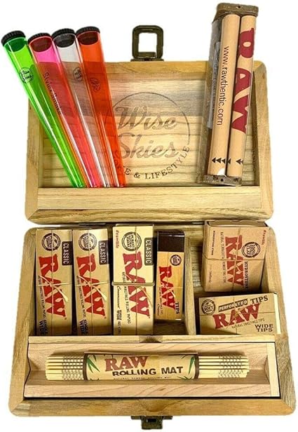 Wise Skies Smoking Wooden Rolling Box Raw Rolling Papers Raw Rolling Mat Amazon Co Uk Kitchen Home