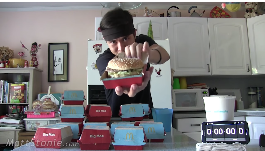 The surprisingly slim youtuber matt stonie managed to consume four big macs four.