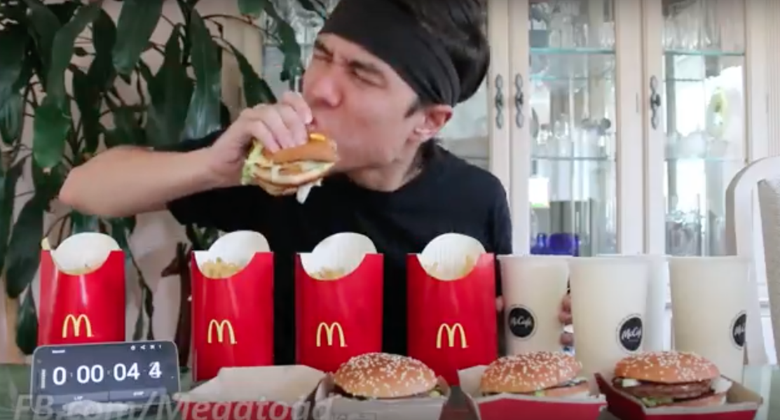 A man has achieved online fame for completing the impossible big mac challenge in just five and a half minutes.