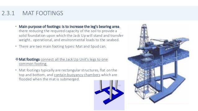 A more logical choice for drilling environments that have soft floors mat supported jackups distribute the weight of the rig across the ocean s bottom like a snow shoe.