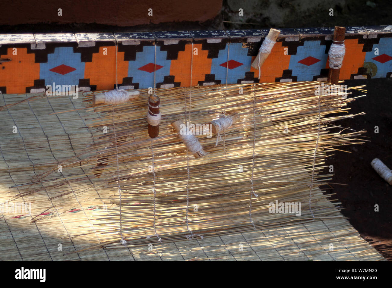Mat weaving uses vertical warp weavers and horizontal weft strips.