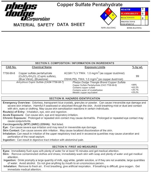 Copper Sulfate Pentahydrate Data Sheet Material Safety