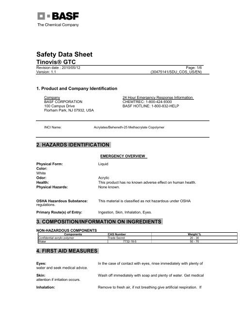 Safety Data Sheet Tinovis Worldaccount Basf Com