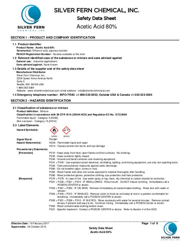 Material Safety Data Sheet Acetic Acid Acetic Acid 80