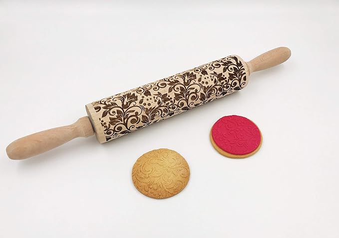 Amazon Com Patisse Wooden Decorative Rolling Pin With Intricate Flower Pattern 7 7 8 Or 20 Cm Length Kitchen Dining
