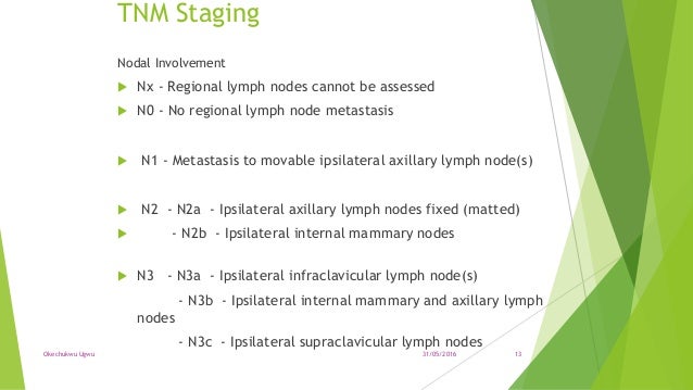 Internal mammary nodes have cancer but axillary lymph nodes don t appear to have cancer.