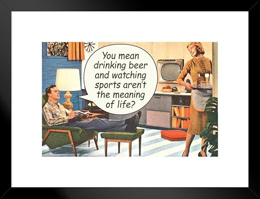 Amazon Com Poster Foundry You Mean Drinking Beer Watching Sports Arent The Meaning Of Life Humor Retro 1950s 1960s Sassy Joke Funny Quote Ironic Campy Ephemera Matted Framed Art Wall Decor 20x26 Posters