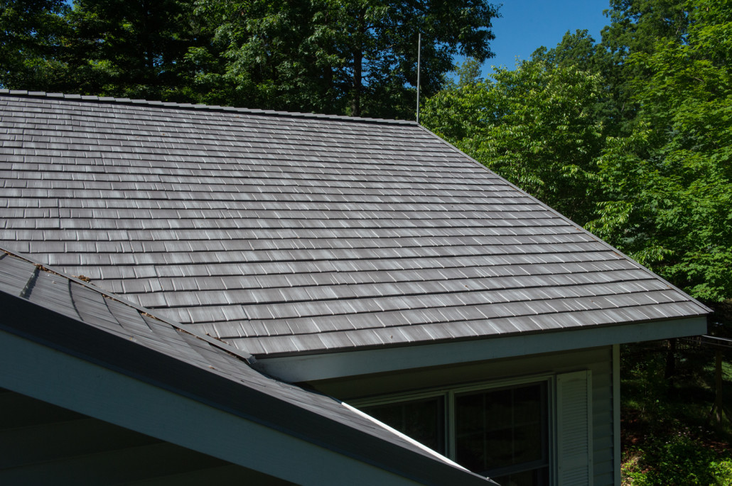 Using advanced application techniques the matterhorn metal roofing system is colored to look like authentic wood shakes slate or clay tile.